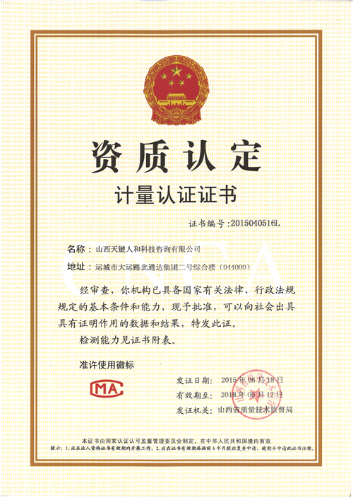 計(jì)量認(rèn)證證書2015年